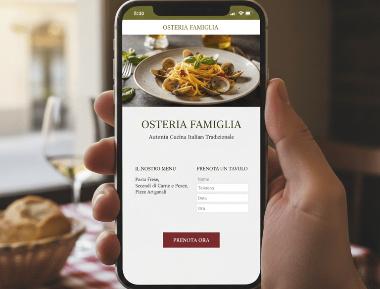 Sito pensato per attività locali con contatto rapido, mappa integrata e pulsante WhatsApp.